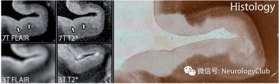 软脑膜下脱髓鞘 | 7T-T2*或MP2RAGE | PSIR和/或3D-T1WI-MPRAGE;T2-FLAIR不太理想;DIR | |