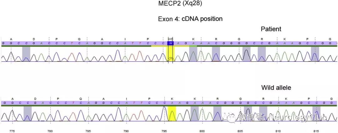 (图:基因检测提示MECP2基因4号外显子杂合无义突变)