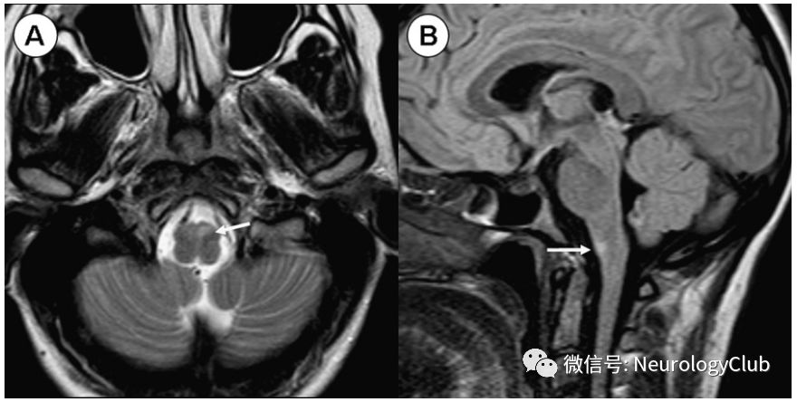 经典的三联征包括病灶对侧偏瘫,对侧位置觉振动觉的缺失以及同侧舌肌无力,并不总是出现(图2)。也可有眼球活动异常和构音障碍。