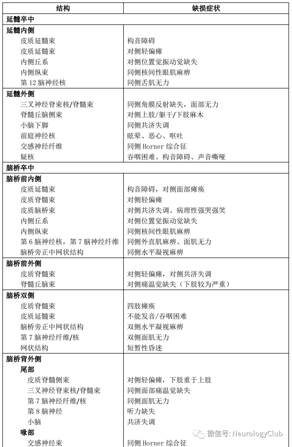 表 脑干卒中综合征