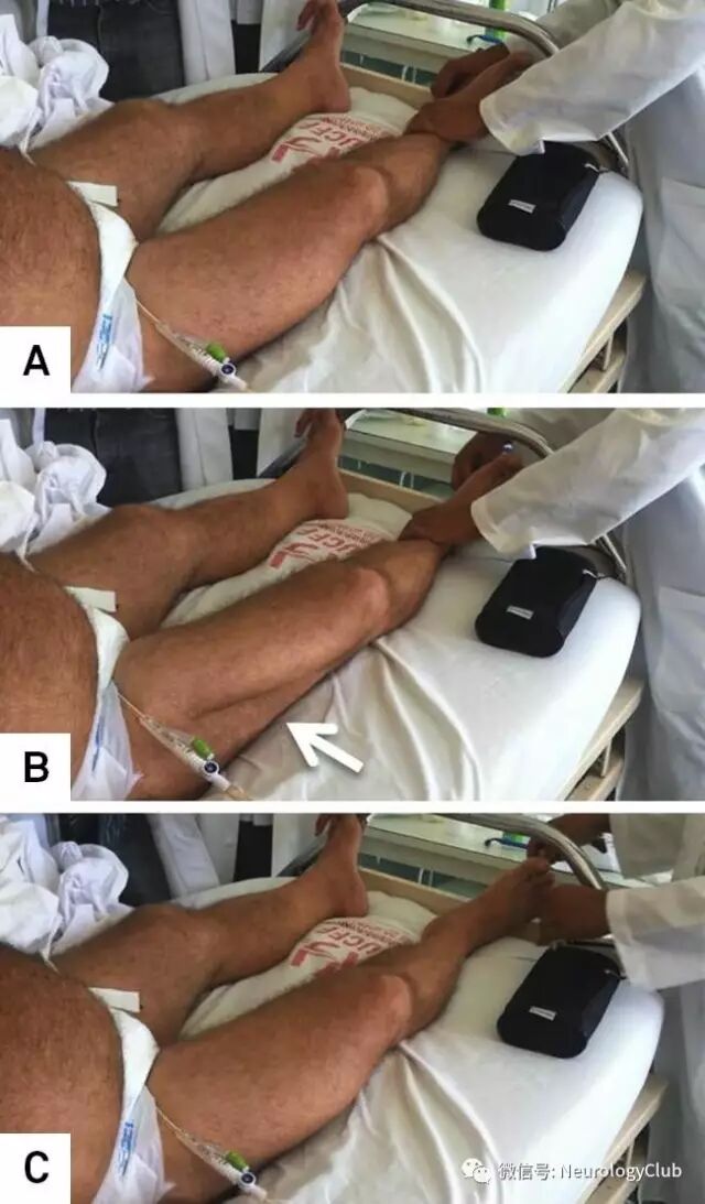 Brissaud反射的特点是刺激足底(检查方法同巴氏征:一手持握其踝部,另一手用钝针或竹签沿足底外侧缘,由后向前划至小趾根部,再转向内侧)时引起阔筋膜张肌的收缩,在大腿的外侧能清楚的观察到,其阳性可提示锥体束受损。特别是对于怀疑上运动神经元疾病但又缺少拇趾的患者而言,这是一个实用的体征。