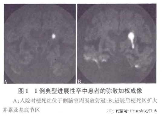 进展性卒中是急性缺血性卒中的一个特殊类型,其概念和定义尚无统一标准。多数学者将其定义为缺血性卒中发病后6h至1周内虽经积极干预,但神经功能缺损症状和体征仍然逐渐进展或呈阶梯式加重。在文献中,与之相近的概念还有早期神经功能恶化(early neurological deterioration,END)和进展性运动功能缺损(progessive motor deficits,PMD)。END多数指卒中发病后48h或72h内病情继续进展且美国国立卫生研究院卒中量表(National Institutes of Health Stroke Scale,NIHSS)评分增加≥4分。而PMD则指卒中发病后5d内NIHSS运动项目评分增加≥2分且持续至少24h。一些临床和生化因素有可能预测卒中进展的发生,但多缺乏特异性。近年来,许多研究显示早期影像学检查结果可预测进展性卒中的发生,并能推测其可能的机制。
