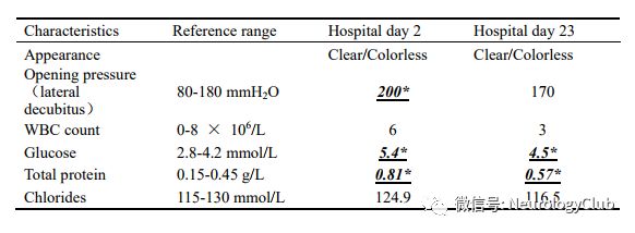 37岁女性,既往体健,在寒战,发烧和肌痛3天后出现谵妄,入院时为昏迷状态。神经影像学提示双侧丘脑和脑桥受累(图1-2),静脉窦正常。实验室检查发现血清转氨酶升高,脑脊液蛋白增加,无特异性病毒(表1-3)。