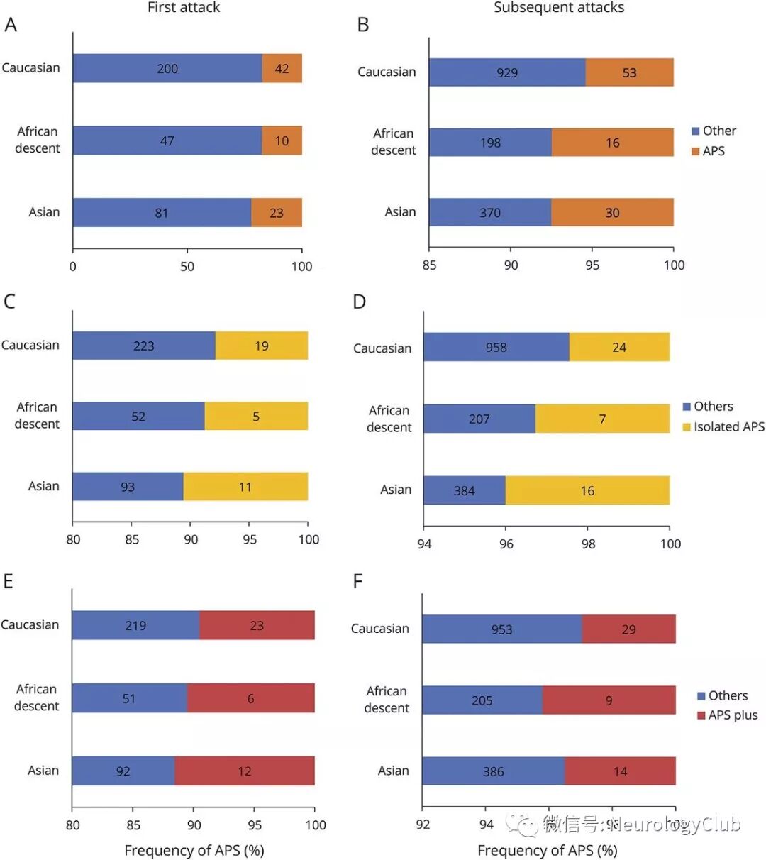 分析AQP4-IgG血清阳性NMOSD(n=430)的国际数据库结果显示,孤立性APS发作的出现率很高(首发7.1%-10.3%;复发9.4%-14.5%)。每100名患有157次APS发作,恶心(n=127,81%)持续中位数为14天(范围2-365天),呕吐(113,72%)出现中位数为5次/d(2-40次),持续1-20分钟,呃逆(102%,65%)持续中位数为14天(2-365天)。免疫治疗后症状完全好转。