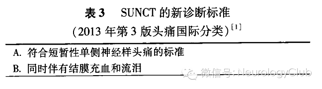在TACs中,SUNCT应与丛集性疼痛和发作性偏侧头痛进行鉴别,详见表5。