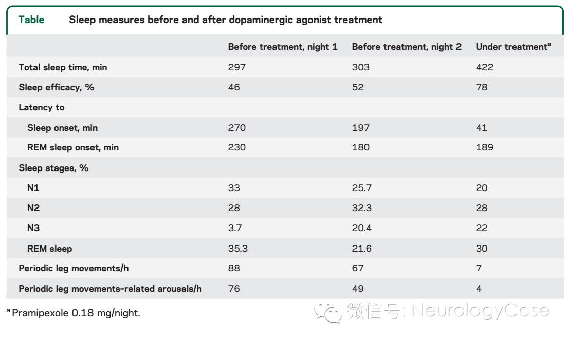 (表:多巴胺受体激动剂治疗前后的睡眠评估)