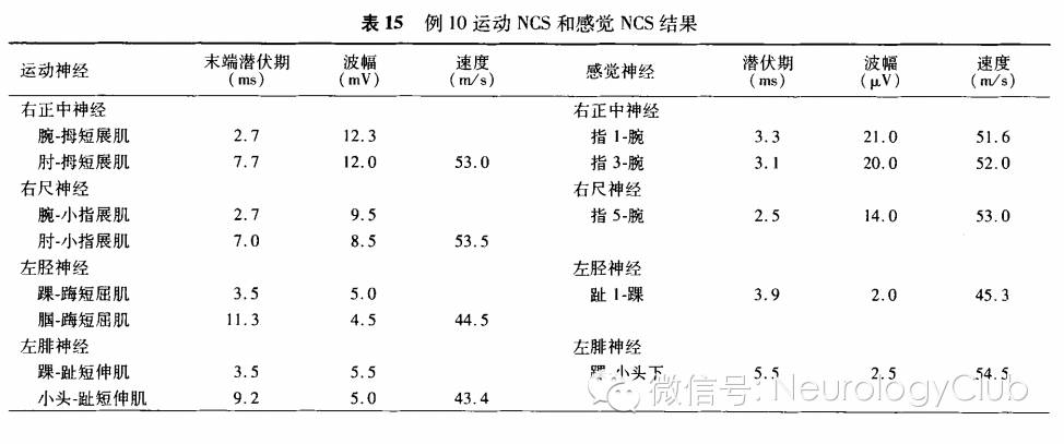 1. NCS:(1)神经选择:常规选择上、下肢神经。(2)常见结果:NCS一般正常。