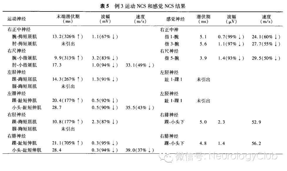 1. NCS:(1)常规检测下肢的神经。(2)常见结果:NCS一般正常,病变严重时可出现CMAP波幅降低,感觉神经传导正常。