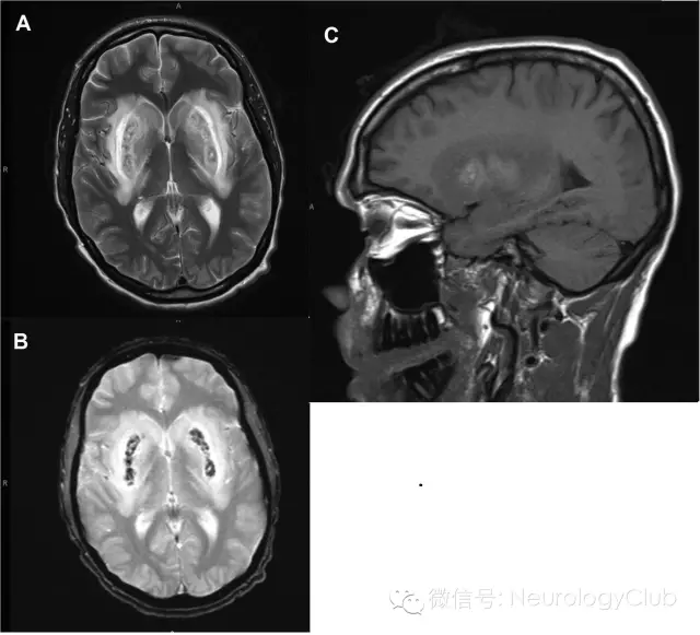 (图:A:T2WI;B:T2梯度回波序列;C:T1WI)