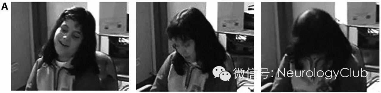 (发作性睡病儿童,看卡通时出现垂头现象。引自:Brain. 2011 Dec;134(Pt 12):3477-89)