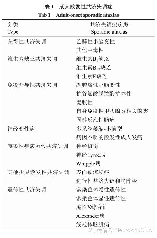 成人发病的散发性共济失调症病因和诊断