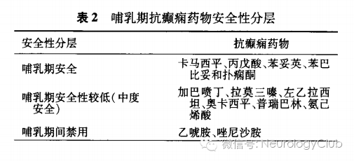 2013年,Davanzo等根据AEDs母乳喂养的风险,将AEDs主要分为3类,见表2。