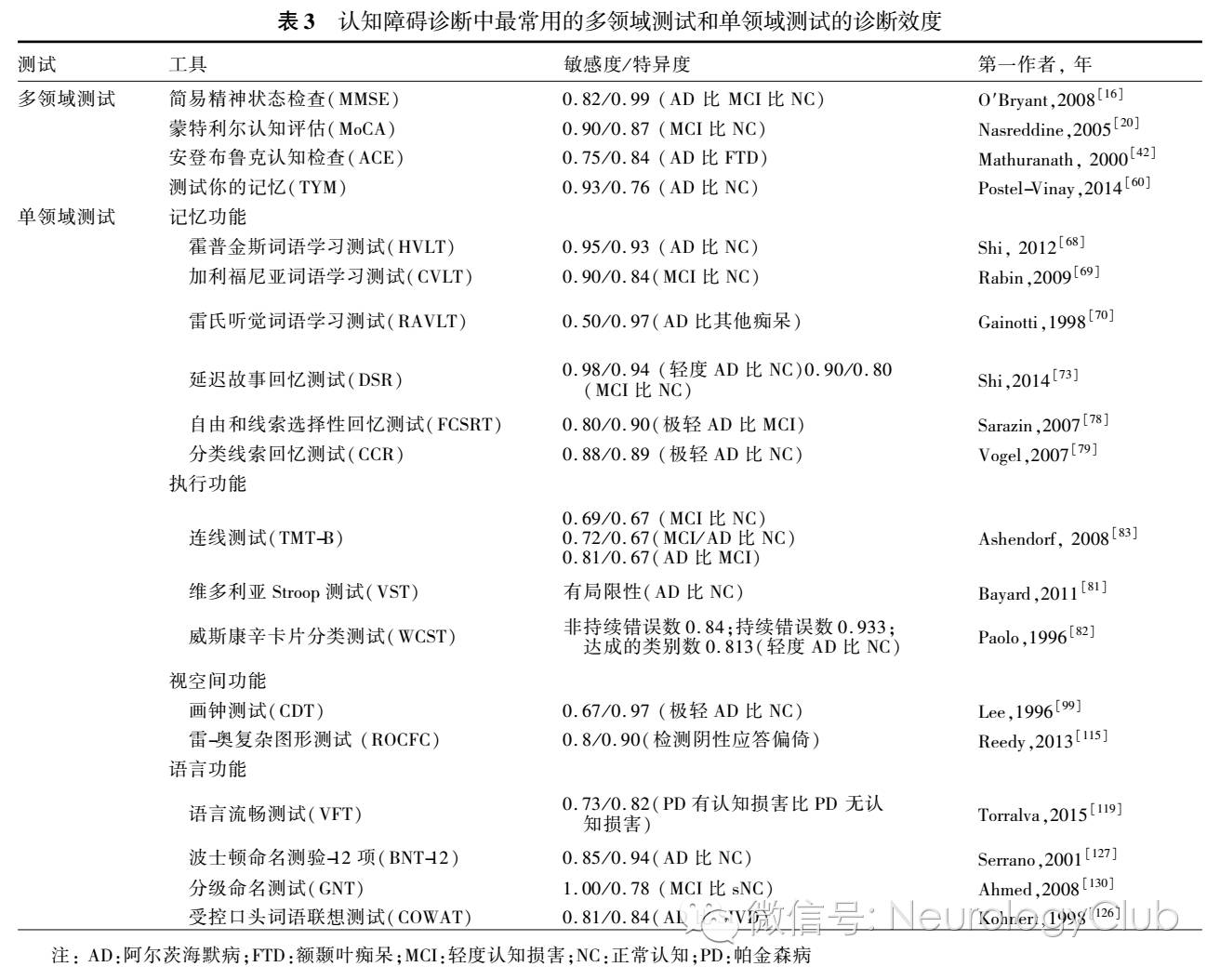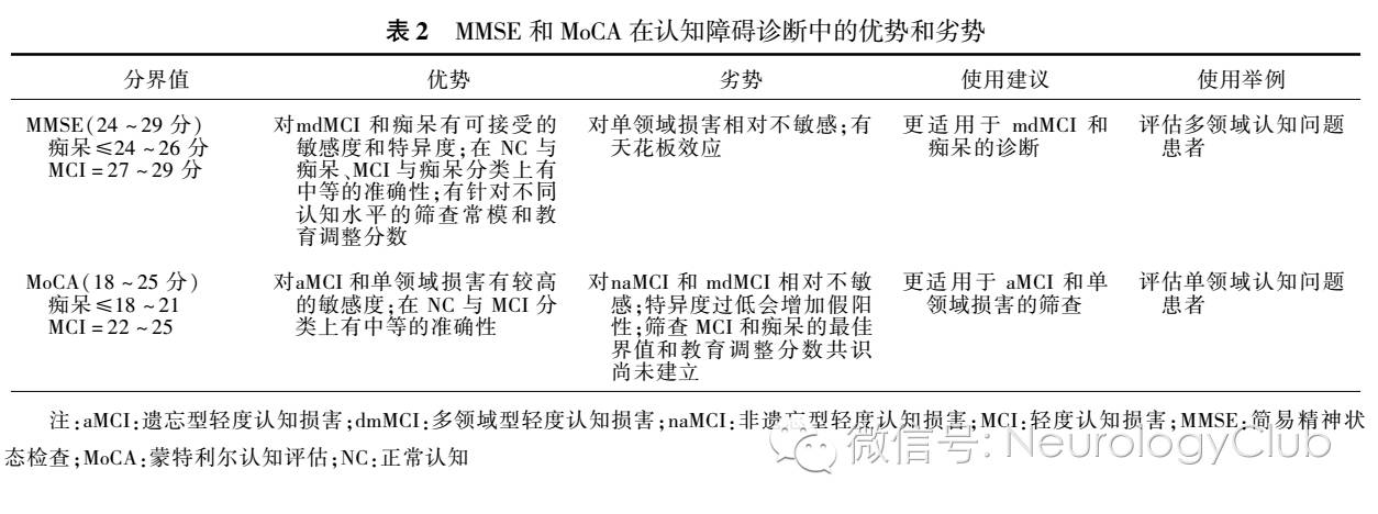 总之,MoCA是一个检测MCI的敏感筛查测试,但特异度低。MoCA的诊断性能受教育水平及语言的影响,尚缺乏定义认知损害的最佳界值及教育调整分数共识。
