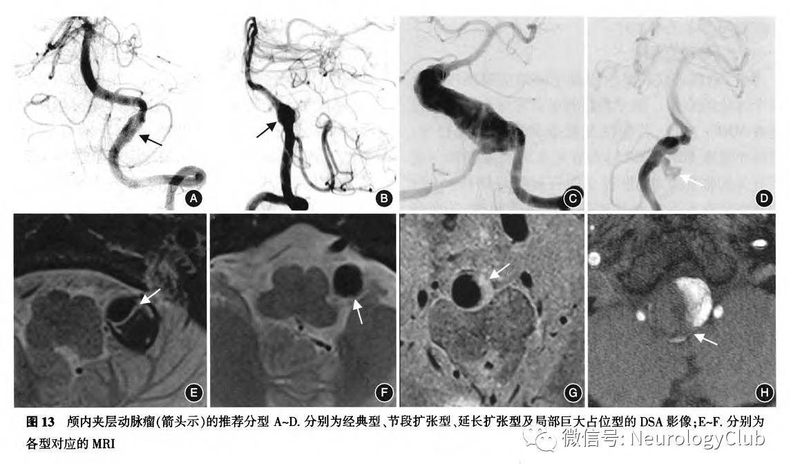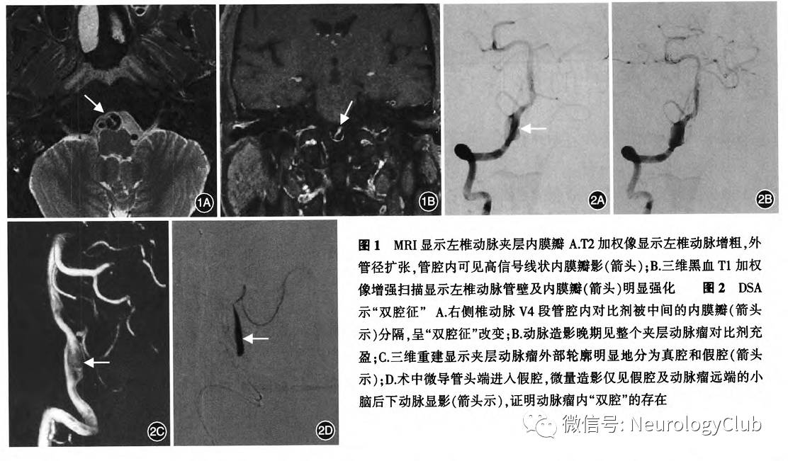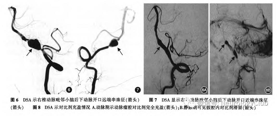 显示,62%-76%的患者随访检查显示病变有好转改变,但也有病变迅速进展的报道。以上证据显示,部分IAD病变进展较快,在数天甚至数小时内影像学上就可能发生明显的变化,故综合对比分析患者既往的影像学资料尤为重要,能更好地把握疾病的动态发展规律。以往临床上DSA为最常用的夹层病变检查方法,随着CTA和MRA影像技术的进展,目前在国内外许多医疗机构DSA已经不被作为初级的筛查方法。但当患者存在SAH或者急性缺血性卒中等血管内治疗的指征时,DSA检查仍是必要的。