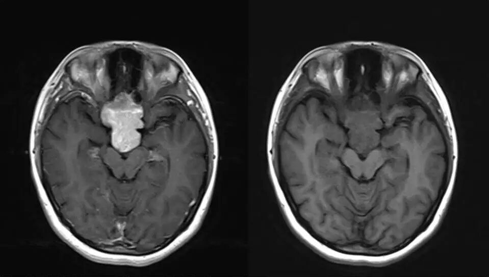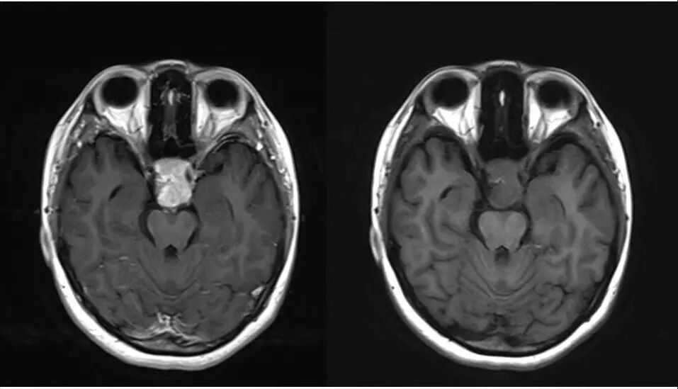 1.脑膜瘤:一般呈等信号,边界清楚,形态规则,分叶状少见,与垂体分界清楚,注药后强化均匀;