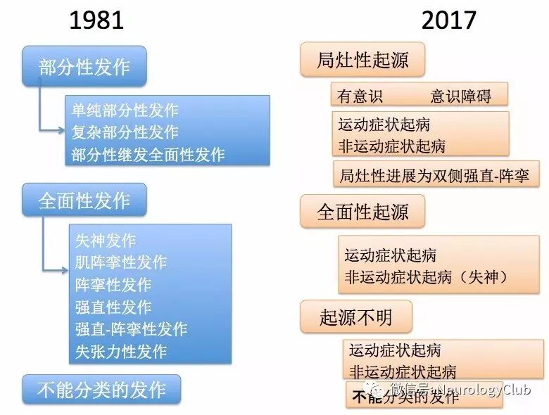 (图3:1981年和2017年ILAE癫痫发作的分类比较)