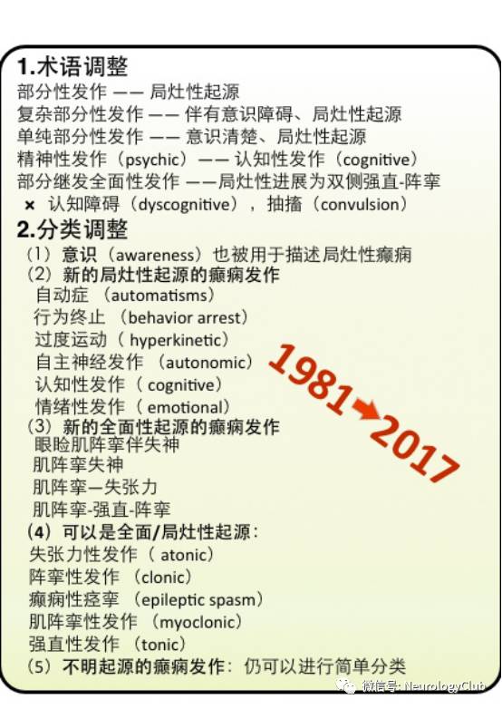 (图5:1981年与2017年ILAE癫痫发作分类的主要区别)