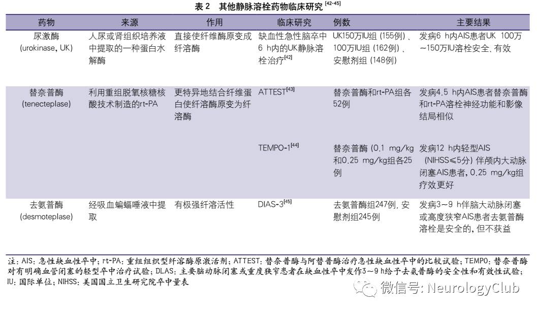 其他静脉溶栓药物安全性和有效性研究相对较少(表2)。