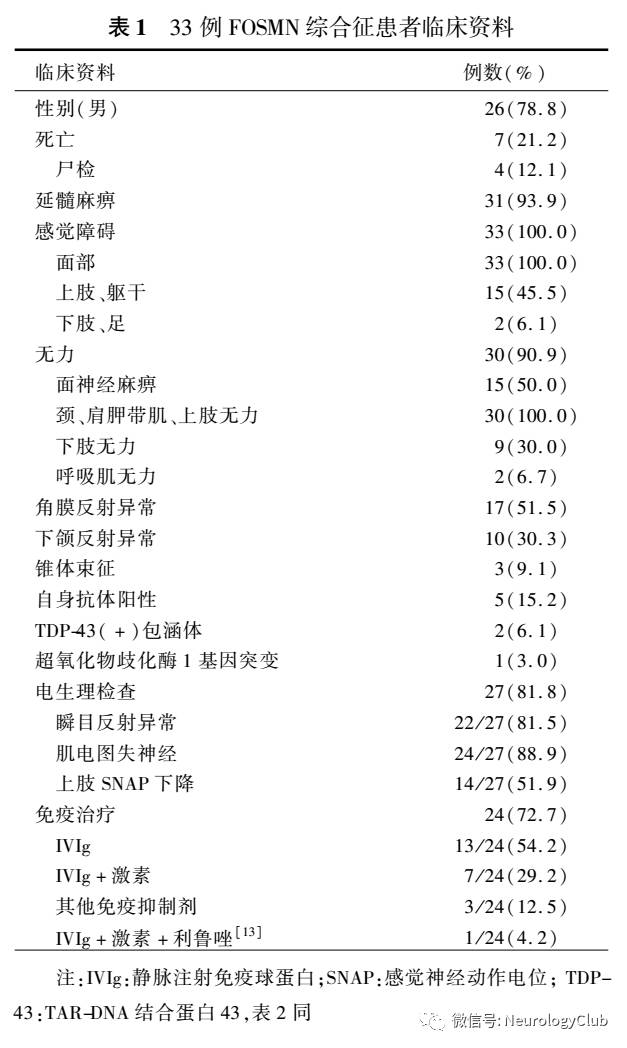 由于至今未发现家族性FOSMN综合征的病例报道,故无法确定其可能的基因突变位点。更大样本量的病例采集,进一步的神经病理学的研究,抗神经节苷脂抗体的分析,尤其是与面部及延髓肌无力相关的抗体(GD1a及GT1a)的检测,新一代的基因测序技术可能为FOSMN发病机制的研究更提供进一步的支持。虽然在病程早期采取免疫调节治疗能否获益仍未可知,但考虑到其慢性进展的病程及可能造成的不良预后,经验性的免疫治疗仍是可行的。