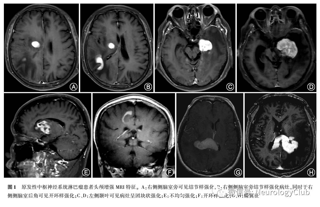 原发性中枢神经系统淋巴瘤(primary central nervous system lymphoma,PCNSL)是一种原发于中枢神经系统(central nervous system,CNS)内的淋巴结外非霍奇金淋巴瘤,累及眼、脑、脊髓、脑膜或脑神经,约占颅内原发肿瘤的1%-5%、淋巴结外淋巴瘤的4%-6%、所有淋巴瘤的1%。临床中该病罕见,临床表现缺乏特异性,易被误诊,特别是对于伴有颅内占位病变且以认知障碍或双眼视力下病的患者,易被误诊为CNS瘤髓鞘病(tumefactive demyelinating lesions,TDLs)。有的活体组织检查(简称活检)前预先给予激素治疗,致使病理变化不典型,从而延误诊治;有的需要多次活检方能确诊。马爱梅等曾报道1例间隔3年,经过3次活检才证实为PCNSL的病例。我们将近年来国内外PCNSL的相关临床进展进行综述,以提高对本病的认识。