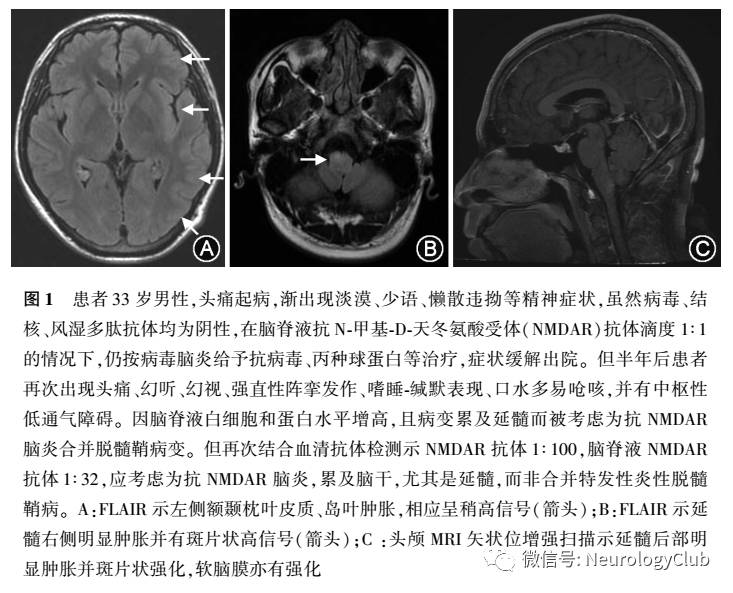 神经科临床医生除外通过免疫手段进行抗体检测来对IIDD、AE进行鉴别诊断外,也应从临床症候、影像学表现中把握不同类型疾病的相应特点,这样才能更好地理解和掌握IIDD与AE之间的异同,从而更好地为临床服务。