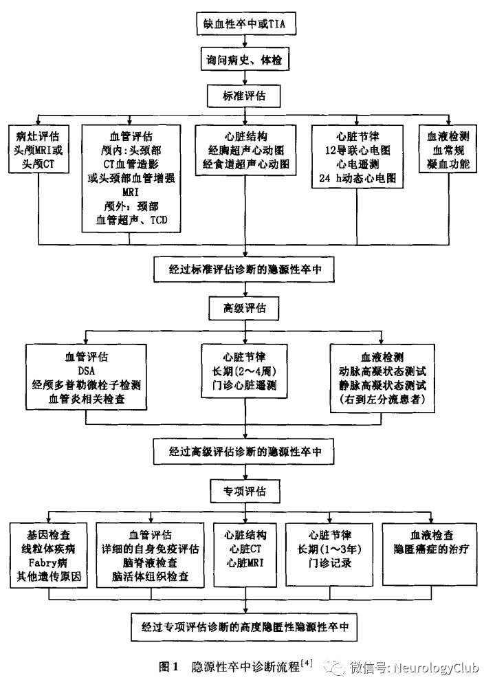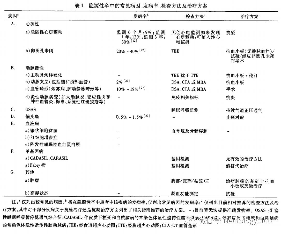 CS的发病率因所使用筛查手段及诊断标准不同具有较大差异,约占所有缺血性卒中的10%-40%。随着卒中病因学及发病机制研究的深入,卒中分型的改良及诊断技术的提高,缺血性脑卒中划分为CS的百分比较之前已有所下降,相比1970年40%的比例,目前在高级卒中中心检查出的高度隐匿CS仅占缺血性卒中的10%-15%。而经过标准评估后诊断为CS的患者仍占所有缺血性卒中患者的20%-30%,因此,CS的病因诊断对临床医生来说仍是不小的挑战。