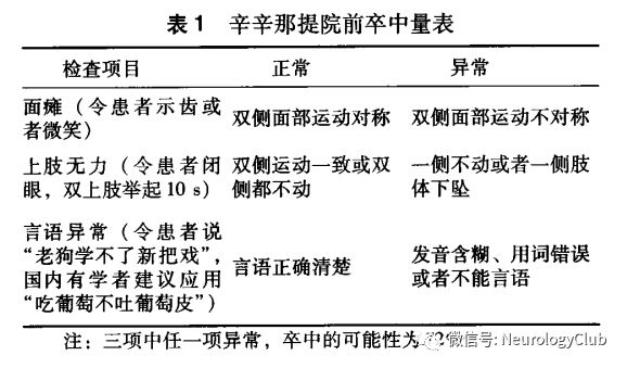 若患者突然出现以下任一症状时应考虑卒中的可能:(1)一侧肢体(伴或不伴面部)无力或麻木;(2)一侧面部麻木或口角歪斜;(3)说话不清或理解语言困难;(4)双眼向一侧凝视;(5)一侧或双眼视力丧失或模糊;(6)眩晕伴呕吐;(7)既往少见的严重头痛、呕吐;(8)意识障碍或抽搐。