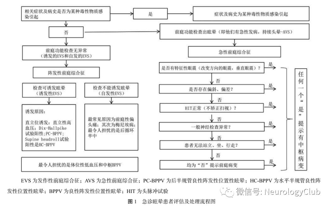 急诊眩晕患者评估及处理流程见图1。