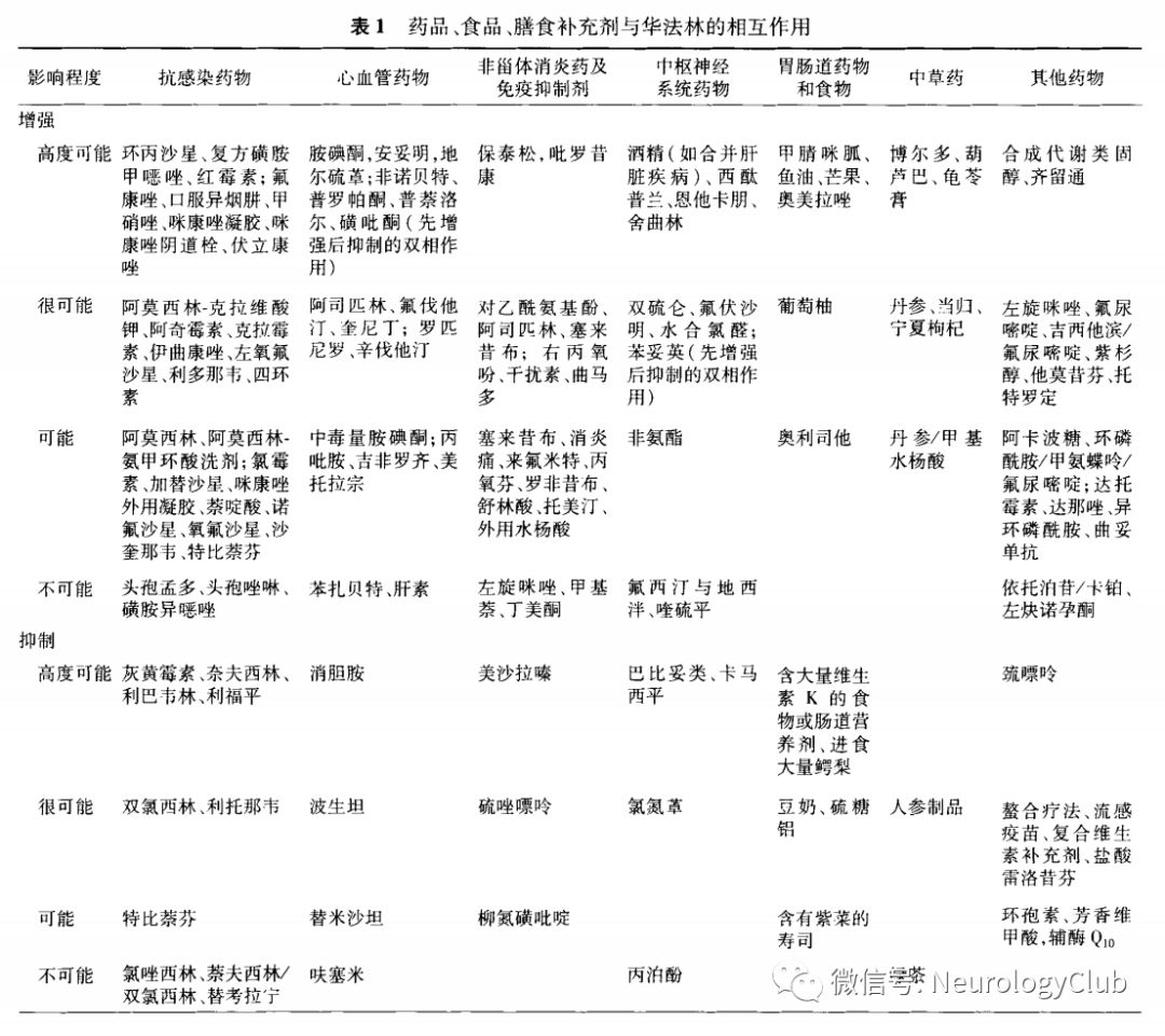 服用华法林的患者,应避免与非甾体消炎药同时服用,包括环氧合酶-2选择性非甾体消炎药和某些抗生素。避免与抗血小板药物同时服用,除非获益大于出血危险,如急性冠状动脉综合征(ACS)患者或近期置入支架的患者。